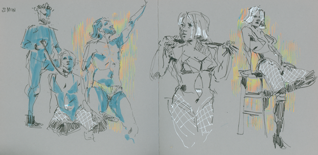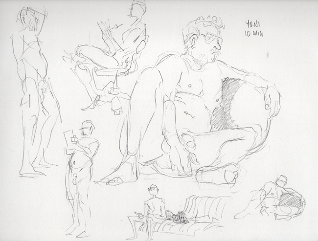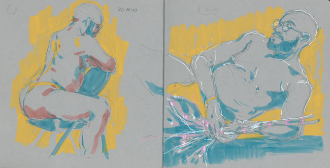 A selection of figure drawing done from life.